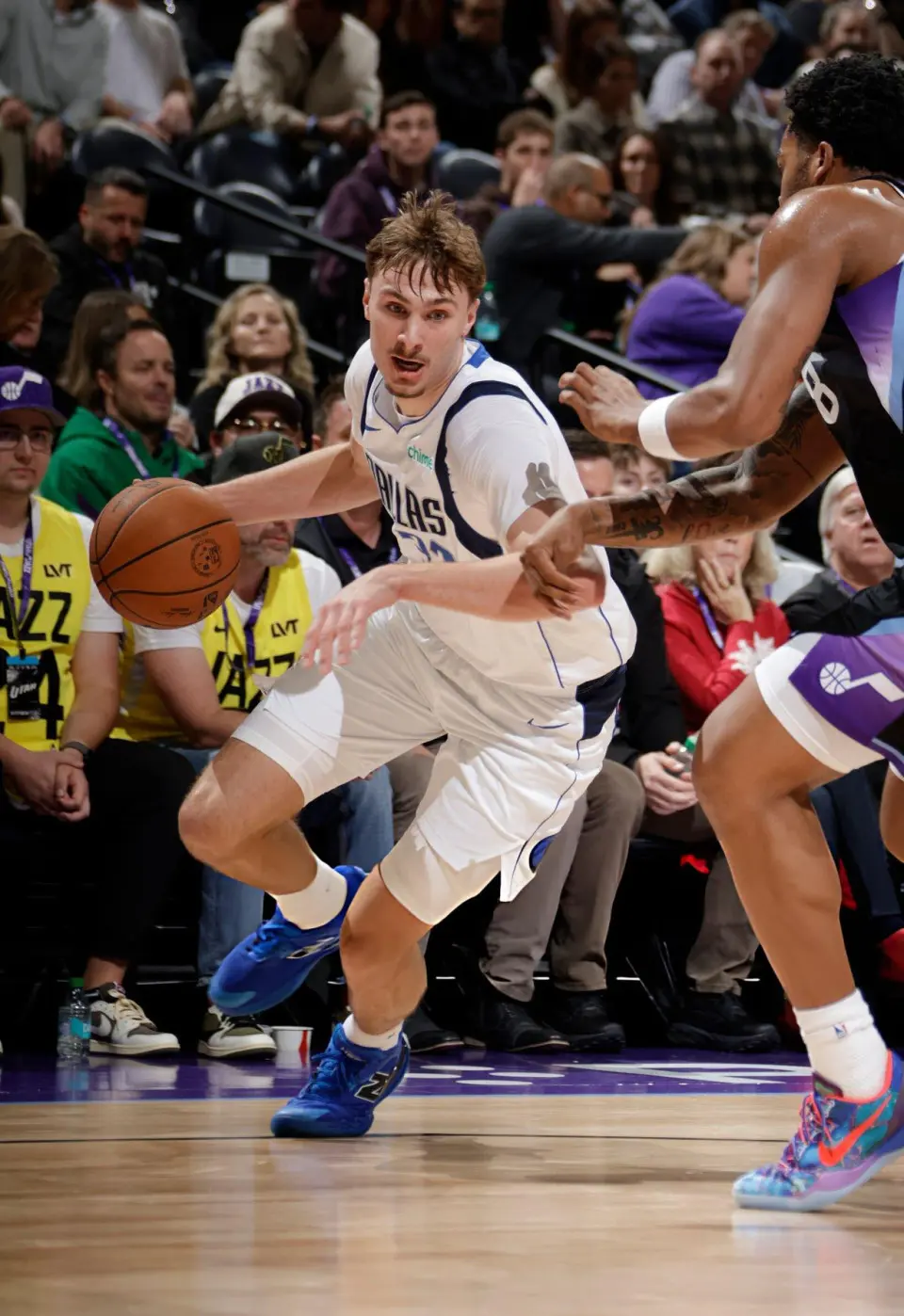 首节比赛中,弗拉格状态非常出色。他多次冲击爵士队的篮下得手,同时两次中投出手也都稳稳命中,单节7投5中拿到14分!次节比赛中,弗拉格短暂休息回到场上,他的手感不减,不仅中投得手,在右侧45度命中三分,同时弗拉格展现自己的侵略性,多次造成犯规命中罚球,单节再次拿到10分!